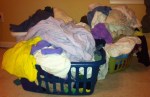 I think all I ever do is laundry. There are always baskets and baskets and baskets in one stage or another throughout my house. There is the over-flowing dirty clothes basket in the bathroom, the folded-but-not-put-away baskets in the hallway, the not folded or sorted baskets outside the laundry room, and the baskets piled high with dirty laundry in the laundry room. And the one basket of clothes I’m gonna have to wash again because, for the second time, I didn’t take it out of the washer in time to avoid that familiar mildew scent. Then there are the clothes strewn all over my children’s bedroom floors, and the piles of clothes my youngest children tossed out of their dresser in order to find the only pair of shorts they EVER want to wear. There are even the nicely folded and sorted clothes on the kitchen table – that is, until we need the tabletop and they are pushed aside, over and into things.