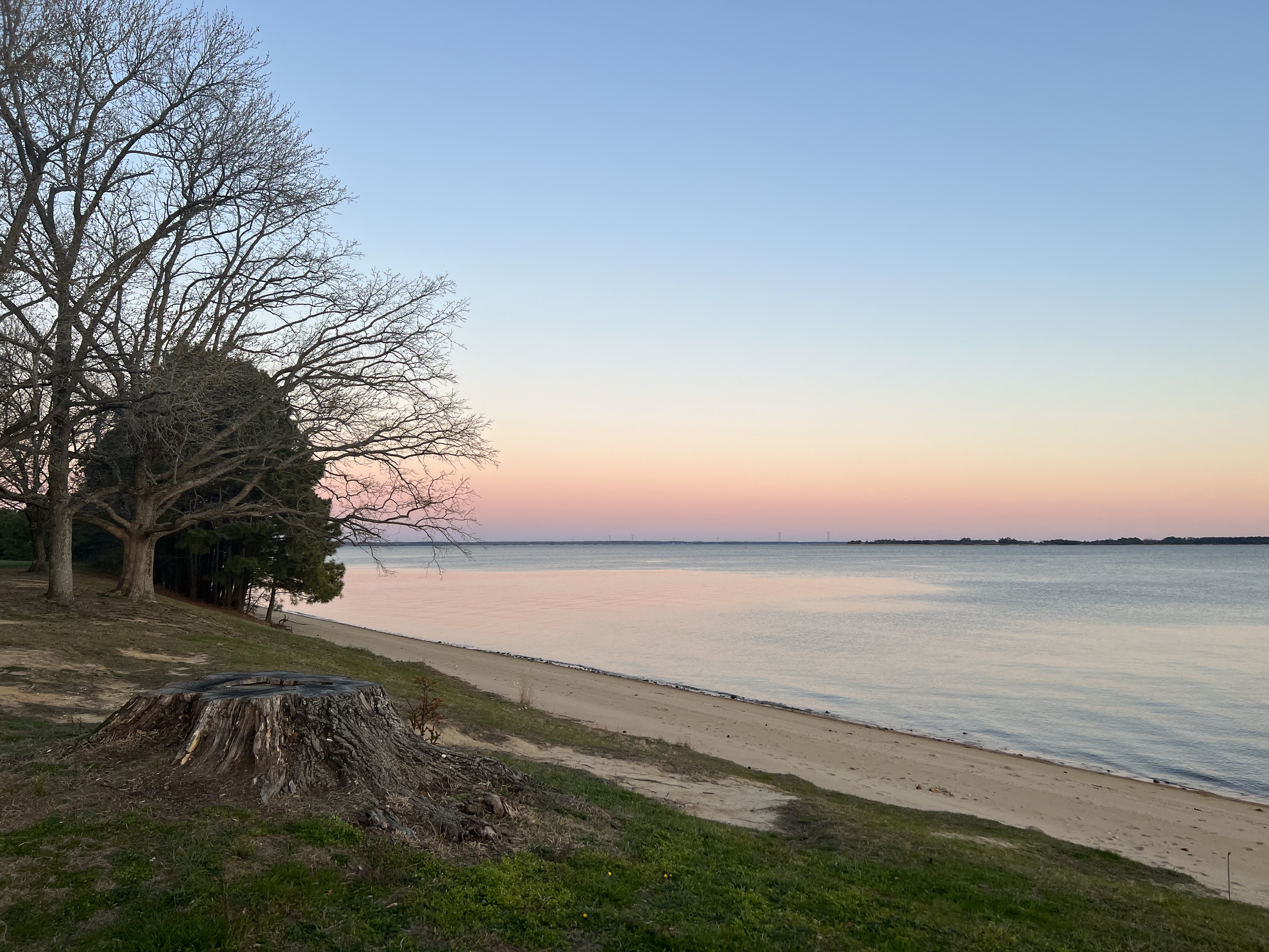 There is a stump where a big beautiful oak tree used to stand tall over the river. We called it “Grandpa’s Tree” because my dad used to like to sit under it and quietly look out at the water. It’s a special spot for our family. We miss my dad and now we miss the tree too, but the stump provides a wonderful place to sit and even though it is no longer a glorious tree, it is still a lovely place to think, watch the horizon, and wait.
